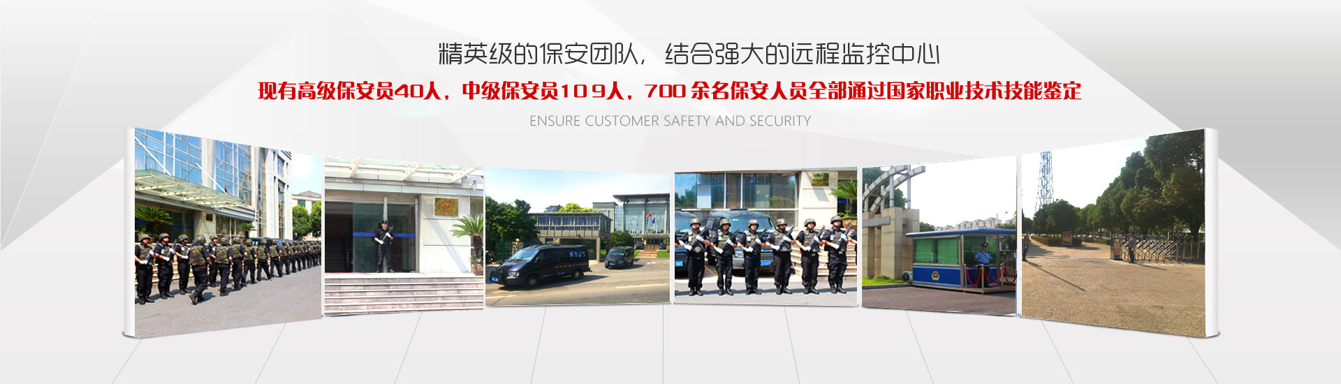 公司擁有一大批經(jīng)驗(yàn)豐富,勇于創(chuàng)新的優(yōu)秀管理人員,現(xiàn)有高級(jí)保安員40人,中級(jí)保安員109人。